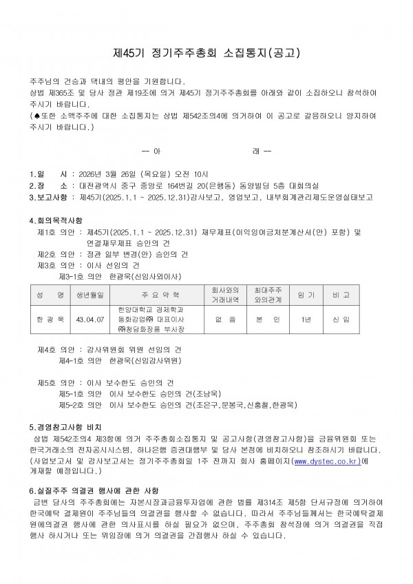 제45기 정기 주주총회 소집공고
