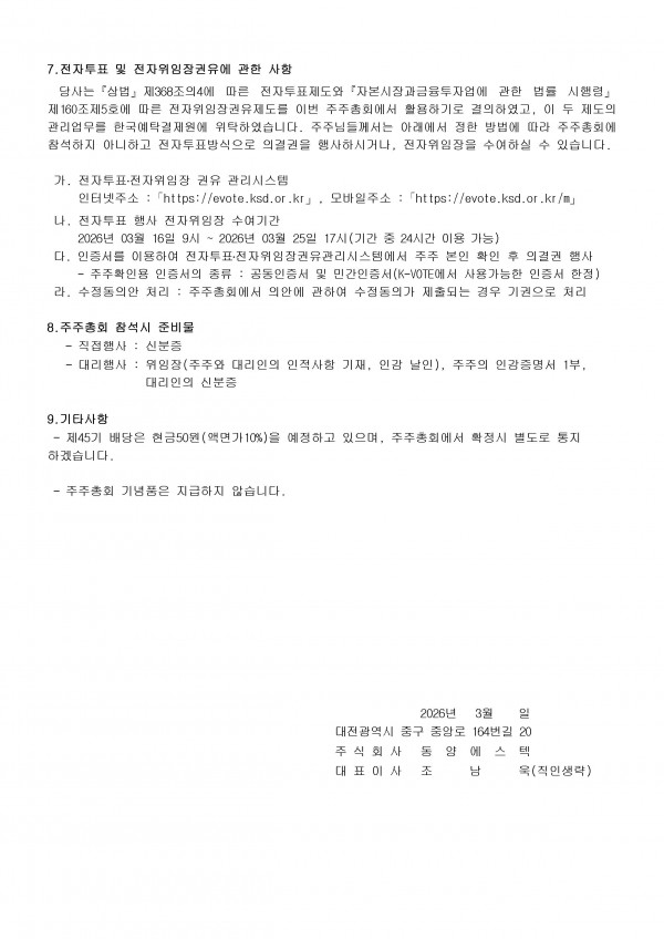 동양에스텍 제44기 결산 공고